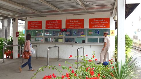 ▲プラットホームの奥に切符売り場があるので、こちらでバンコクまでの切符を購入しましょう。普通列車ならば最安5バーツ、急行ならば25バーツ、特急なら321バーツです。ただし、ドンムアン駅からバンコクまでは、普通列車だろうが特急だろうが、所要時間は大して変わりません。