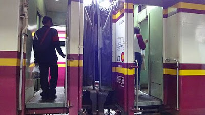 ▲タイの鉄道は、プラットホームの高さが列車の床面の高さに揃えられているわけではないので、ステップを使ってよいこらしょと自力で乗り込まなければなりません。荷物が大きいと、ちょっと大変。