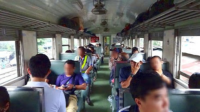 ▲社内はこのような雰囲気です。空港利用者ばかりでなく、地方へと向かう人もたくさん乗り合わせていました。走行中には車掌さんの検札がありますので、先ほどの切符を提示しましょう。ドンムアン空港までの22kmを、1時間書けてゆっくりと走っていきます。(これじゃ、背全然急行じゃないでしょ!)
