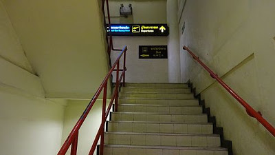 ▲到着フロアからドンムアン駅までは連絡橋を利用するのですが、先ほどの薄暗い出口を出てみると、なんといきなり階段があるではありませんか!荷物を抱えて連絡橋まで登るのはちょっとつらい……