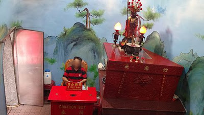 ▲龍のトンネルの出口付近には、募金箱があり、募金を徴収する人が座っています。ご利益を得るためにも、ここは募金を奮発しておきましょうか!(笑)