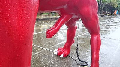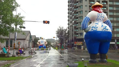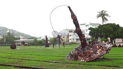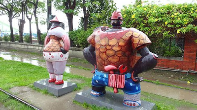 ▲倉庫群を結んでいたかつての線路は、現在では遊歩道として整備されています。その遊歩道沿いには、土偶のような特徴的な形をしたアートが、何体も飾られていました。