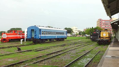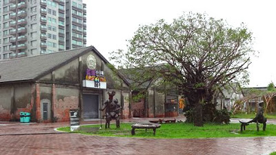 ▲地下鉄西子湾駅を降りて東側の出口に出ると、すぐに屋外鉄道展示施設が見えてきます。もともとは高雄港駅という鉄道駅がありました。再開発される前は、このエリアはサトウキビの集積地として数多くの倉庫が立ち並んでいました。台湾各地から、サトウキビを積んだ列車がここに集まってきたわけですね。