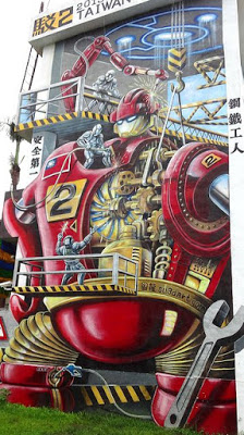 ▲こちらはロボットの壁画です。高さが10mくらいあり、結構迫力があります。