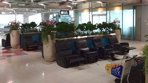 ▲制限エリア(出発エリア)では、仮眠には困らないはずです。このように安楽椅子が何脚も置かれた無料の仮眠エリアも数カ所設けられていますし、ベンチもたくさんあります。スワンナプーム国際空港での乗り継ぎの際に、こういったスペースで休むこともできますね。