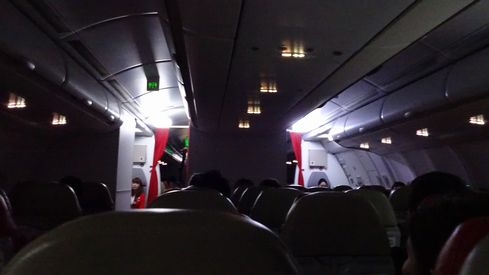 ▲どんな環境でもぐっすり眠れる私、フライト中は殆ど寝てしまいました。目を覚ました時には既に最終着陸態勢に入っていて、照明が暗転されていました。予定よりも20分ほど早くドンムアン空港に到着です。料金を考えてみると、コストパフォーマンスの高いフライトでした。