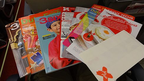 ▲シートポケットの中身は結構豊富です。特に機内誌が3冊も入っていたのにはビックリ。