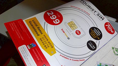 ▲機内では、タイで使えるSIMカードも販売されているようでした。7日間の1.5GBの高速データ通信(それを超えると速度制限あり)で299バーツなり。空港でSIMカードを買うのにあちらこちら探しまわるよりも、これを機内で購入してしまったほうが楽ですね。