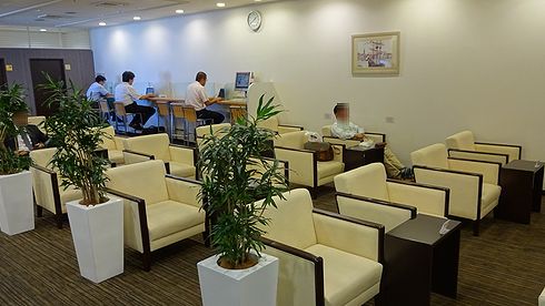 ▲内部は白を基調とした何の変哲もないカードラウンジといった感じ。 ビジネスデスクは奥に6脚見えていますが、足が届かないくらい座面が高い椅子なので、長時間理仕様には向いていないように思います。