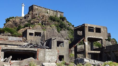 ▲島の高台に建てられた住宅は、管理職用の高級住宅で、各世帯に内風呂がついていたそうです。また、手前の真っ白な灯台は、炭鉱閉鎖後、人がいなくなり島から明かりが消えてしまったため、船の運行に支障をきたすということで建てられたもので、島で最も新しい建物なのだとか。