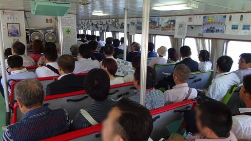 ▲船内は、ほぼ満員です。さすがは軍艦島、すごい人気ですね。