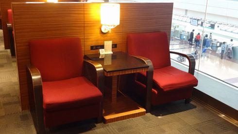 ▲窓側の席からはチェックインフロアの様子を眺めることもできます。1階下の喧騒とは対象的な、ゆったりと過ごすことのできるシートです。