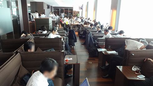 ▲ただ、この日はなぜか非常に混み合っていました。このラウンジは出発フロアと同じアロアにあり、階の移動をする必要が無くアクセスしやすいため、人気なのかもしれません。