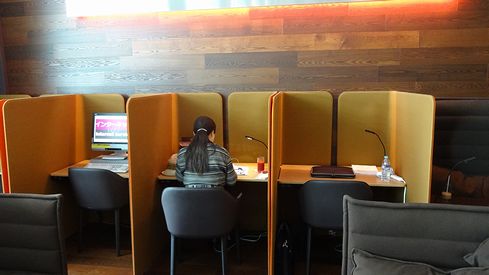 ▲ビジネスブースも用意されていますが、混み合っているため落ち着いて仕事ができるかどうかは疑問です。