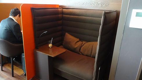 ▲ソファはこのように3方をパーテーションで句切られた独立タイプのものが多く設置されていて、比較的にプライバシーが確保されているように思えます。