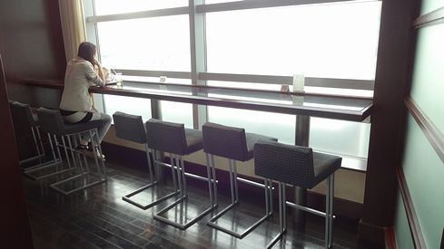 ▲「エアポートラウンジ(北)」は、第2ターミナルの一般エリアにあります。チェックインフロア北側のチェックインカウンターの正面、階を一つ上がったところにあります。