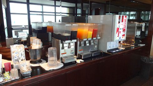▲ドリンクバーは他のラウンジと同様で、コーヒーやスポーツドリンク、各種ジュースが提供されていました。