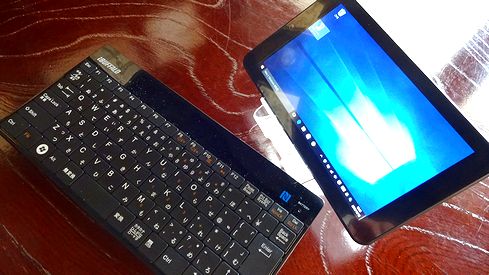 ▲テキスト入力が主な使用用途であるため、ブルートゥースキーボードをペアリングさせて使っています。私が使っているのはBUFFALOのコンパクトキーボードBSKBB13BKです。