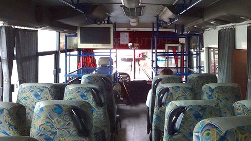 ▲バスの中にはスーツケースを置ける荷物スペースもあります。バスに乗って10~15分ほどでRWMに到着します。