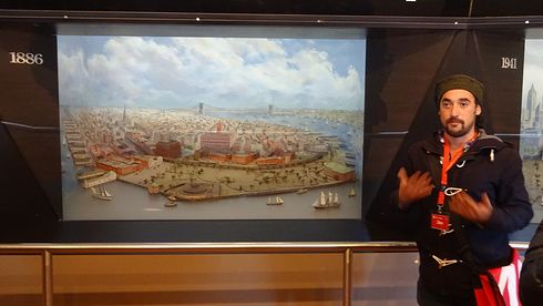 ▲要塞の中には展示スペースがあり、ニューヨークの発展の歴史を学ぶことができます。ゼフさんの丁寧な解説付きです。