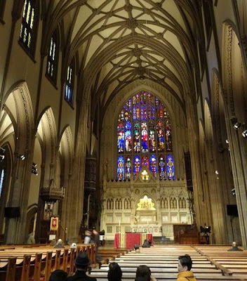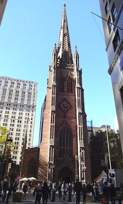 ▲ウォール街のはじにあるトリニティ教会も訪れます。近代的なビルの一角に、ゴシック様式の高い塔がそびえていました。
