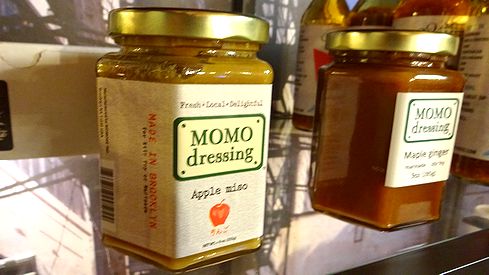 ▲僅かですが、食料品もあります。今回私が購入したのは、「モモ・ドレッシング」。なんと、フレーバーが「りんご味噌味」になっています。ニューヨークで味噌のドレッシングに出会うとは!!