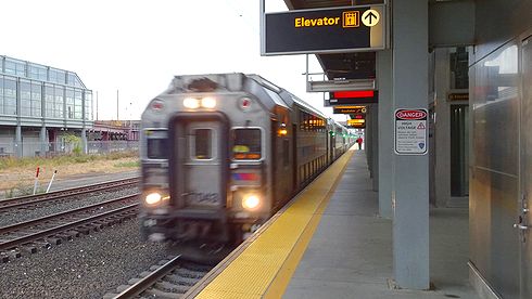 ▲ニュージャージー・トランジットの列車は、だいたい1時間に3本ほどの頻度で運行されています。ゴツい、いかにもアメリカンな雰囲気の列車が入線してきました。早速乗り込みましょう。