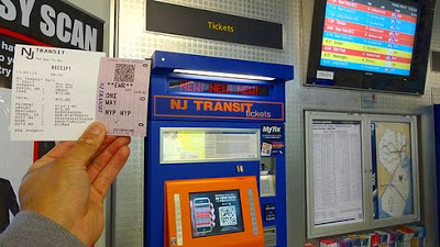 ▲さて、ニューアーク・リバティ空港駅に到着しました。ニュージャージー・トランジット(NJ Transit)の自販機でニューヨーク・ペン・ステーションまでの切符を購入しましょう。一人13ドルで、支払いにはクレジットカードが使えます。空港到着直後で米ドルの現金が手元にない場合などは、クレジットカード決済ができるのは大変ありがたいですね。QRコードがプリントされたチケットとレシートが出てきます。