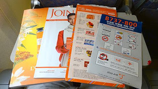 ▲シートポケットには、安全のしおり、機内食メニュー、機内誌、免税品カタログが入っていました。離陸後すぐに、水とお手拭きが配られます(必要な人のみ)。LCCなのに無料でこういったサービスを行っているのは評価が高いです。以前はおにぎりも配られていたらしいのですが、廃止されたようです。