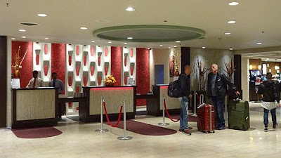 ▲チェックインします。フロントは面白いデザインですね。夜に到着したのですが、24時間空港近くのホテルということもあって、絶えず人が行き交っていました。