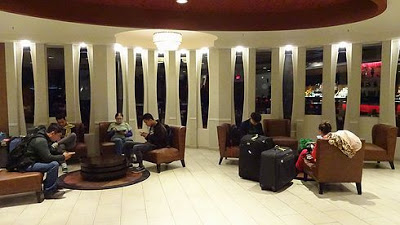 ▲こちらは、チェックインカウンター前のロビースペースです。トランジットホテルというだけのことはあり、皆さん大荷物を抱えています。今到着したのかな?それともこれから空港に行くのでしょうか。