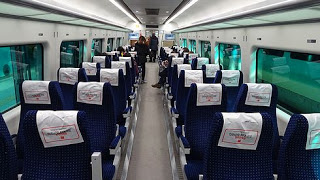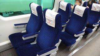 ▲フットレストも用意されており、楽ちんですね。ただ、唯一残念だったのが、シートテーブルが設置されていなかったことですね。インチョン空港からソウル駅までは40分強。この間、ビジネスマンならノートパソコンを出して仕事をしたいでしょうし、観光旅行の私ですら飲み物などを置くテーブルが欲しくなります。なぜシートテーブルを付けなかったのでしょうか、非常に悔やまれますね。
