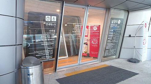 ▲さて、建物の内部に入ってみましょう。自動ドアが斜めについてる!手前にせり出しているので注意をしないと頭がぶつかってしまいます。この自動ドアを使いこなすには、慣れが必要です。