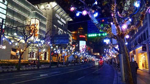 ▲ここは南京西路(Google Maps)。高級ブランドが店を構えるショッピングストリート、日本の表参道のようなエリアなのですが、通りが延々とイルミネーションで飾られて大変綺麗でした。いくら歩いてもイルミネーションが続くのです。中国らしいスケールの大きさにびっくりです。