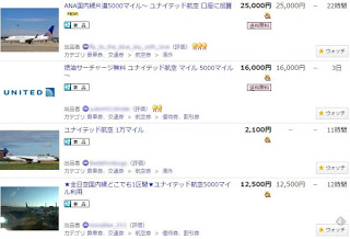 さて、チケットの転売よりも目立ったのが、マイルの転売でした。特に、特典航空券の第三者への譲渡が認められている米系エアラインのオークションはかなりの数にのぼります。
