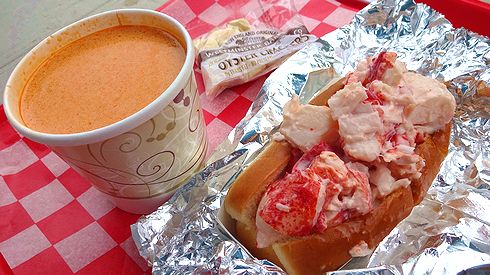 ▲今回は、レギュラーサイズのロブスターロールとロブスターのビスクをオーダー。店員さんは、イカツイ感じのいわゆる「海の男」で、フランクに対応してくれました。合わせて23ドル也。