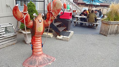 ▲唯一目を引いたのが、店頭に飾られたマスコットキャラクターのロブスターくん(仮名)。大きなハサミを掲げて客を待ち構えていました。か、カワイイ……くない。むしろなんとなくムカつく表情をしています(笑)。