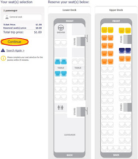 ▼座席指定画面に遷移します。1階のテーブル席と2階の前方席が有料で指定可能です。特に座席指定の必要が無い場合は、そのまま【Continue】をクリック。