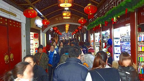 ▲まずは観光客でに際う豫園の西側を訪れました。「豫園老街」(⇒マップ)というアーケード街を歩きます。