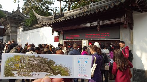 ▲豫園の入場チケットを購入します。かなり混雑しており、チケット売り場に人だかりができていました。1人50元なり。
