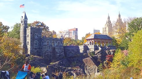 このツアーは、セントラルパークのほぼ真ん中にあるベルヴェデーレ城周辺の歴史的なランドマークを歩いて巡ります。日本からオンラインで事前予約可能で、現地集合現地解散のお手軽なツアーです。