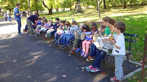 ▲こちらはセントラルパークに遊びに来ていたチビッコたち。皆で一列に並んでおやつを食べています。おそらく近くの幼稚園の子供たちなのでしょうが、すぐ近くにこんな素敵な公園が公園があるなんて羨ましい限り。