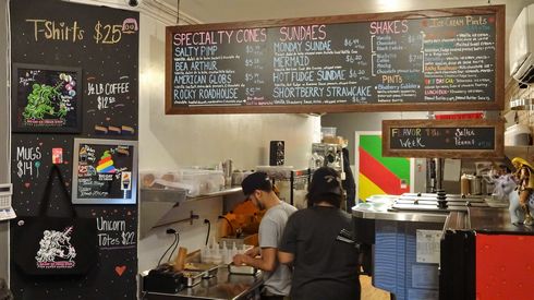 ▲ビッグ・ゲイ・アイスクリームでは、オリジナルブレンドのコーヒーや、ロゴの入ったTシャツなども扱っています。お土産にいいかもしれませんね。